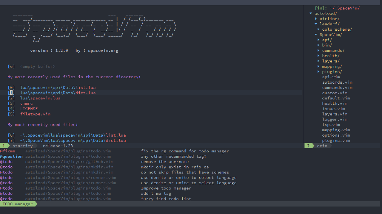 2. vim + SpaceVim (vim 설정과 플러그인을 한꺼번에 묶은 패키지.)****