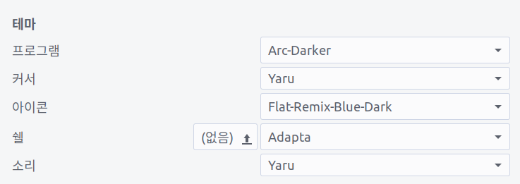20.04부터는 기본 테마도 다크모드를 지원해서 지금은 yaru-dark 쓰는중